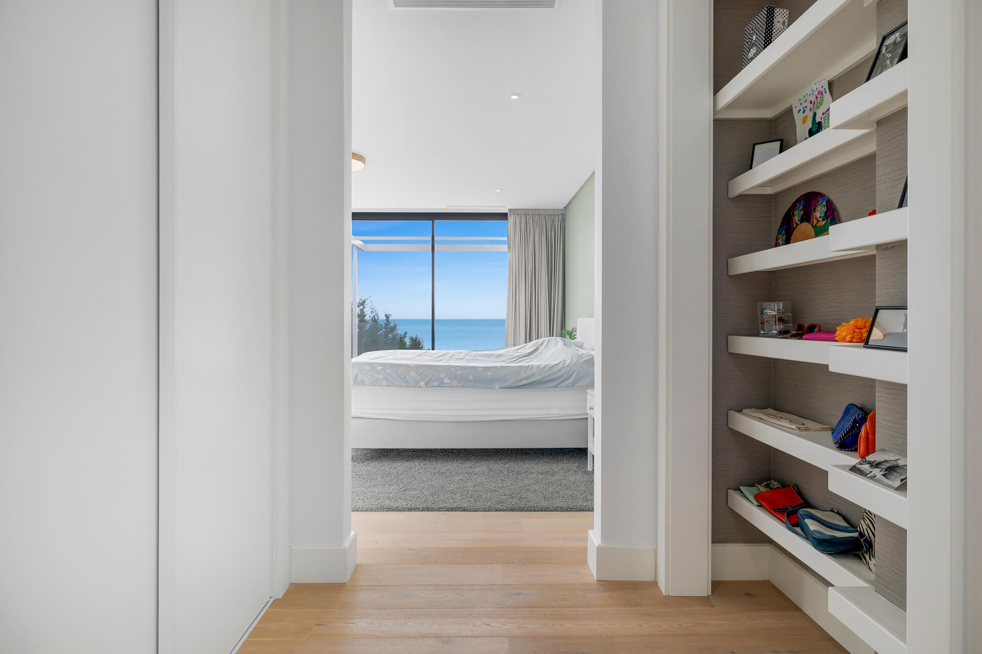 Guest suite: On the left side of this floor is a spacious guest bedroom with custom built-in closets and a luxurious en-suite bathroom.