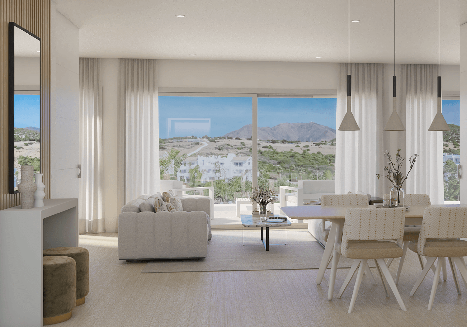 These newly built apartments come in 1-, 2-, and 3-bedroom layouts. Prices range from 199,000 to 475,000 euros, depending on the number of bedrooms and the location. The apartments feature spacious living areas that open onto balconies and terraces and offer fantastic views. All apartments have private storage units, an underground garage, and elevators. And much more…!