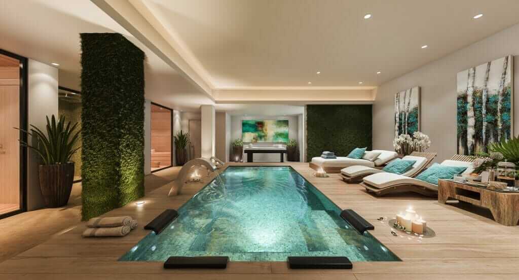 - Mediterranean gardens with pergolas, eco-friendly vegetable gardens, swimming pools, and patios