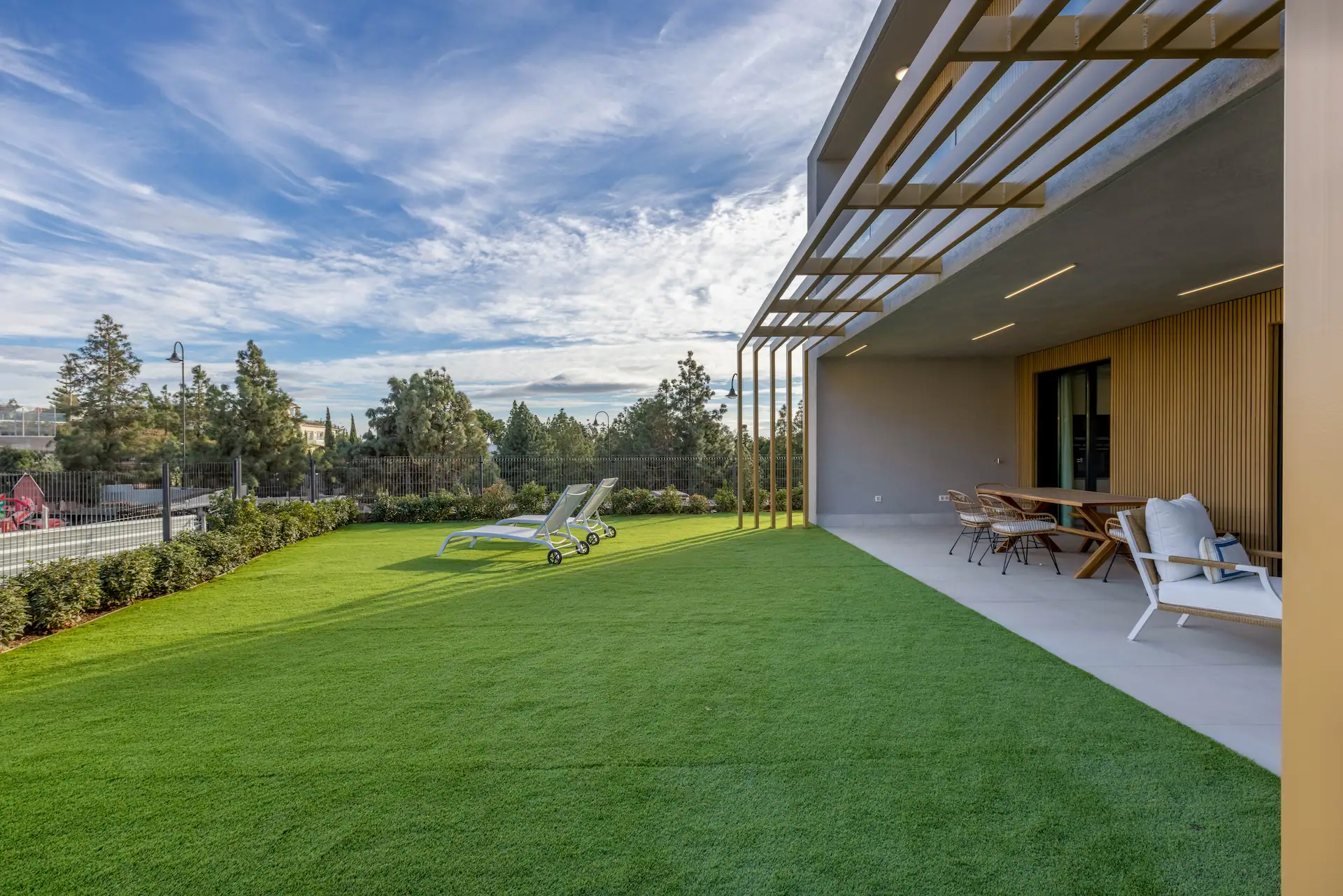 Evergreen Homes in Mijas is a gated residential complex featuring 80 townhouses (3 and 4 bedrooms) with a modern design that blends seamlessly into the natural surroundings. The south-facing orientation offers stunning views of the Mediterranean Sea. In addition to gardens and an outdoor pool, the complex offers access to an exclusive sports and recreation center. The south- and southwest-facing homes benefit from plenty of natural light. Evergreen is committed to sustainability, with high-quality amenities throughout the complex.