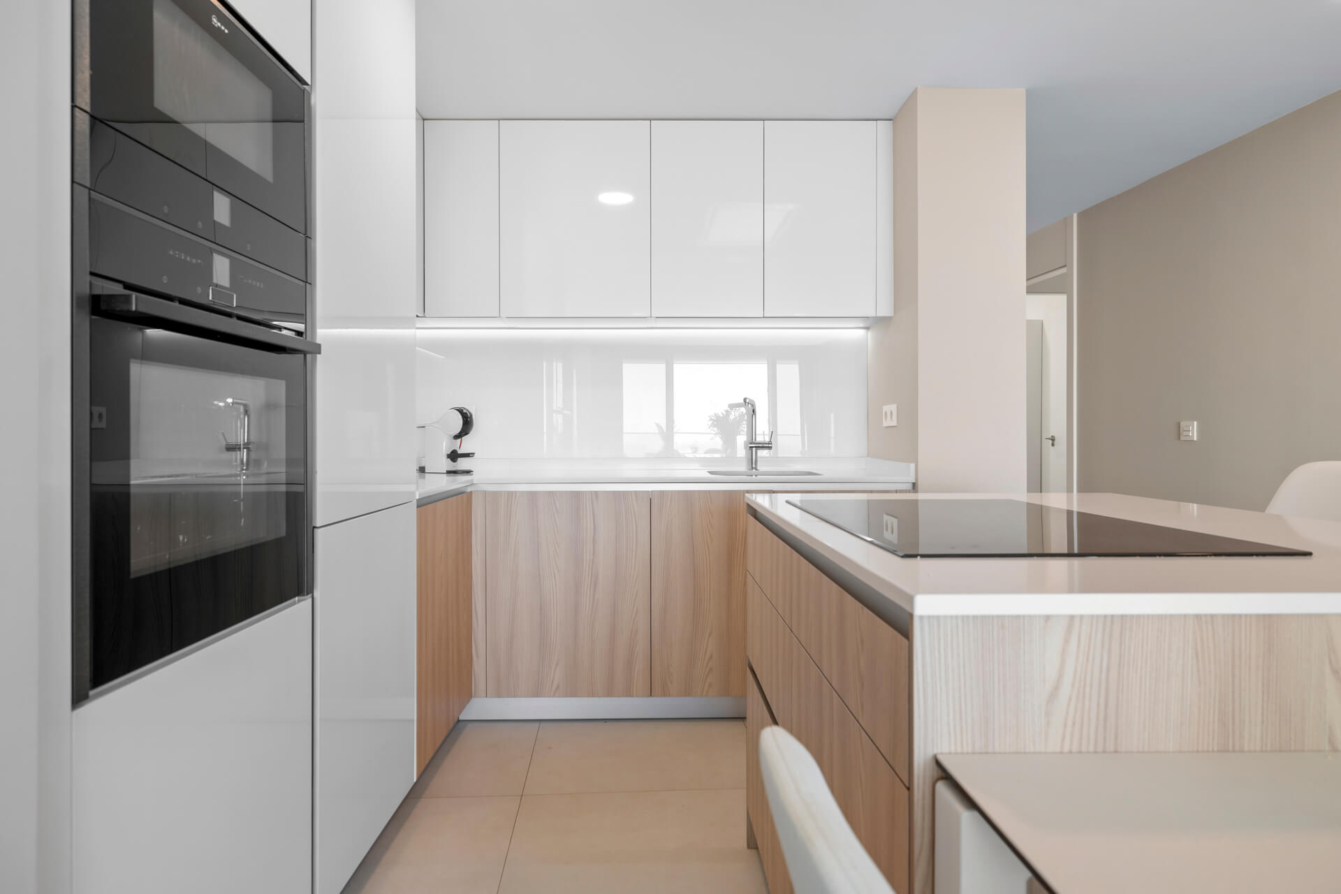 The apartment offers a spacious floor area of approximately 118 m² and features a well-thought-out layout designed to maximize living comfort. The large windows allow plenty of natural light to flood in, while the sleek finishes and high-quality materials create a modern, warm atmosphere.