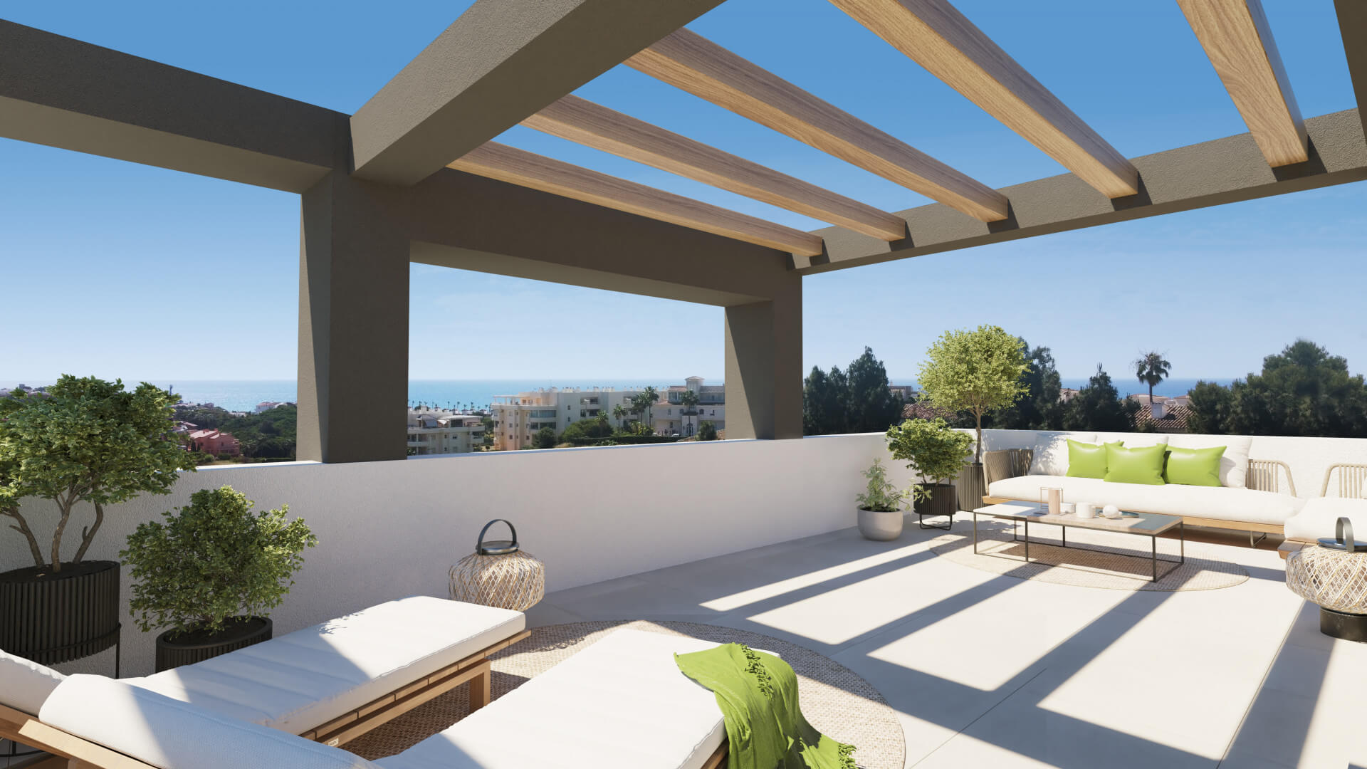 - Spacious terraces and balconies with views of the sea and nature