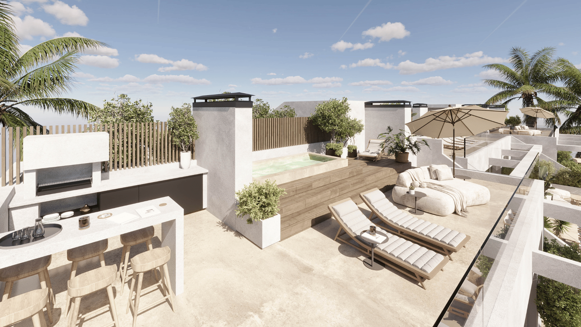 - Penthouses: featuring a sun deck, panoramic ocean views, a private rooftop pool, and the option of an outdoor kitchen—perfect for Mediterranean evenings.